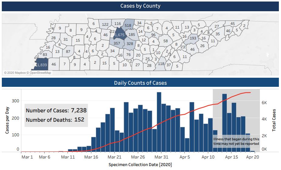 These numbers are intended to be a brief summary of the information provided by the Tennessee Department of Health. More detailed information can be found here: