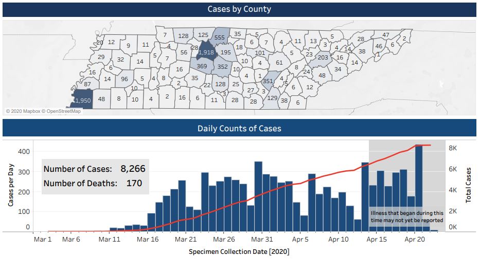 These numbers are intended to be a brief summary of the information provided by the Tennessee Department of Health. More detailed information can be found here: