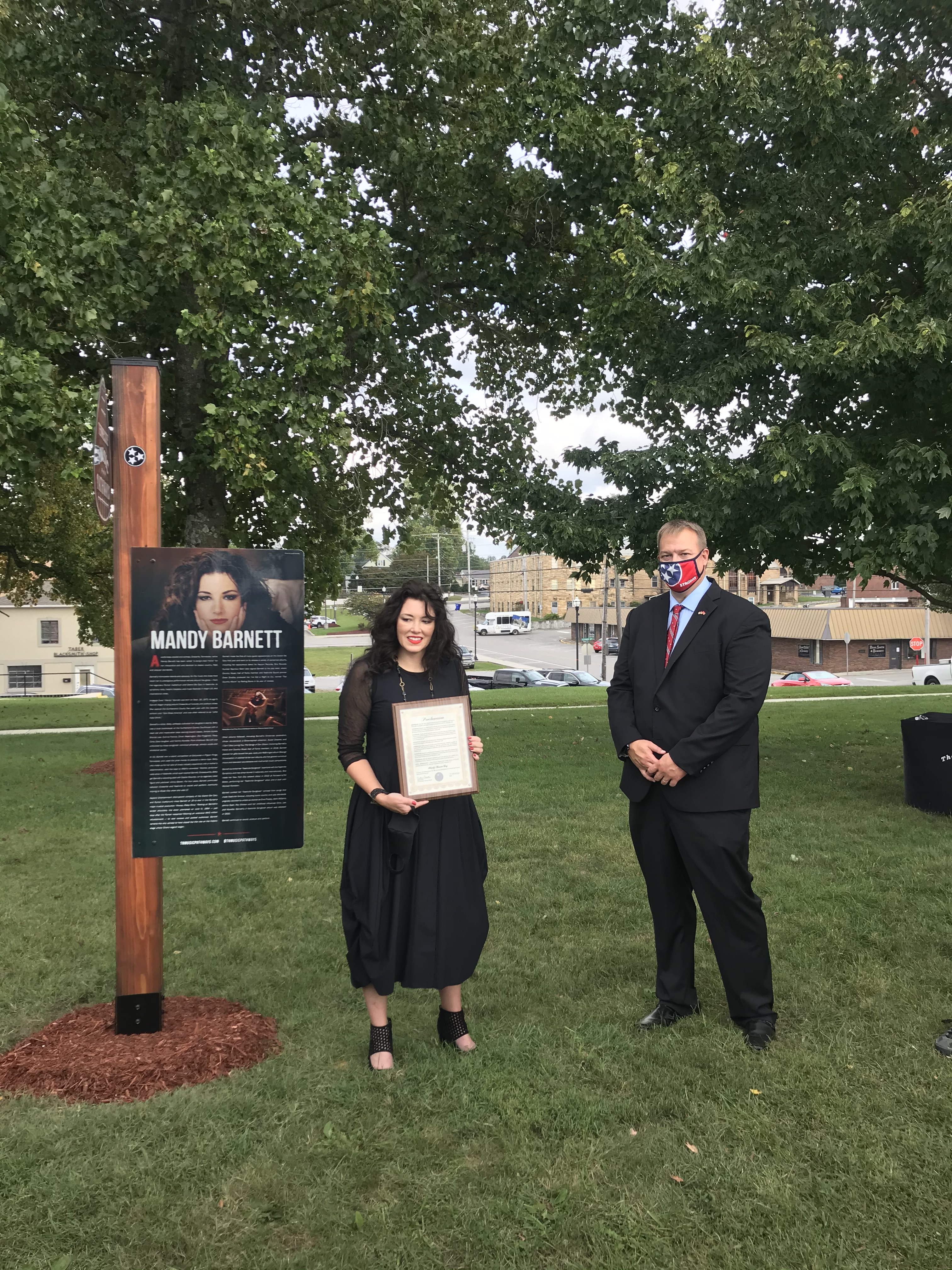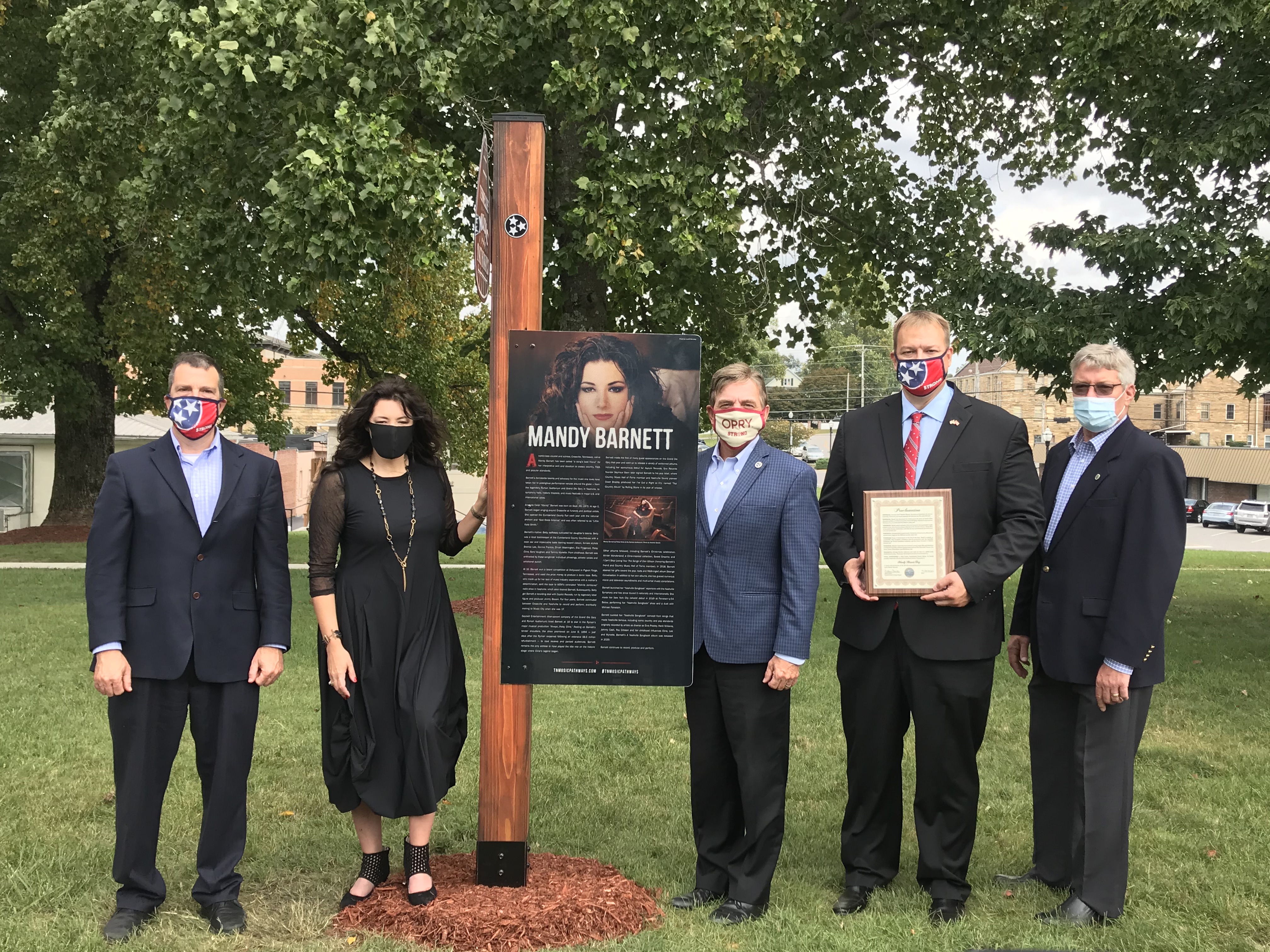 Today, in a gathering on the Courthouse lawn, we celebrated Mandy Barnett’s birthday with the unveiling of her Tennessee Music Pathways marker. Mandy is an outstanding musical talent and a native of Cumberland County (https://www.mandybarnett.com/).