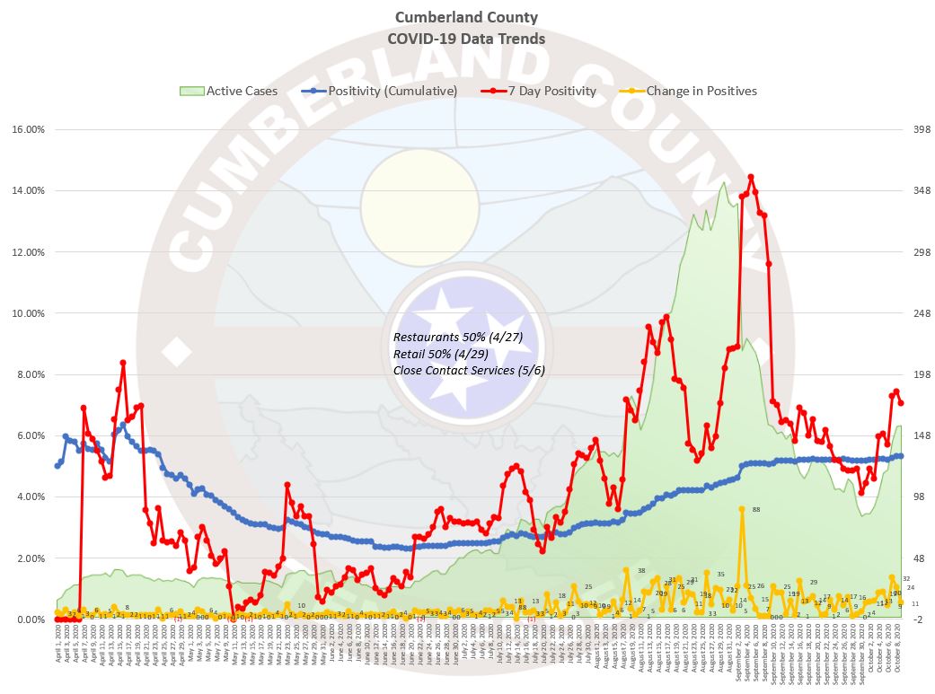 The following is a COVID-19 update from Cumberland County Director of Schools Dr. Ina Maxwell as of Friday, October 9, 2020: