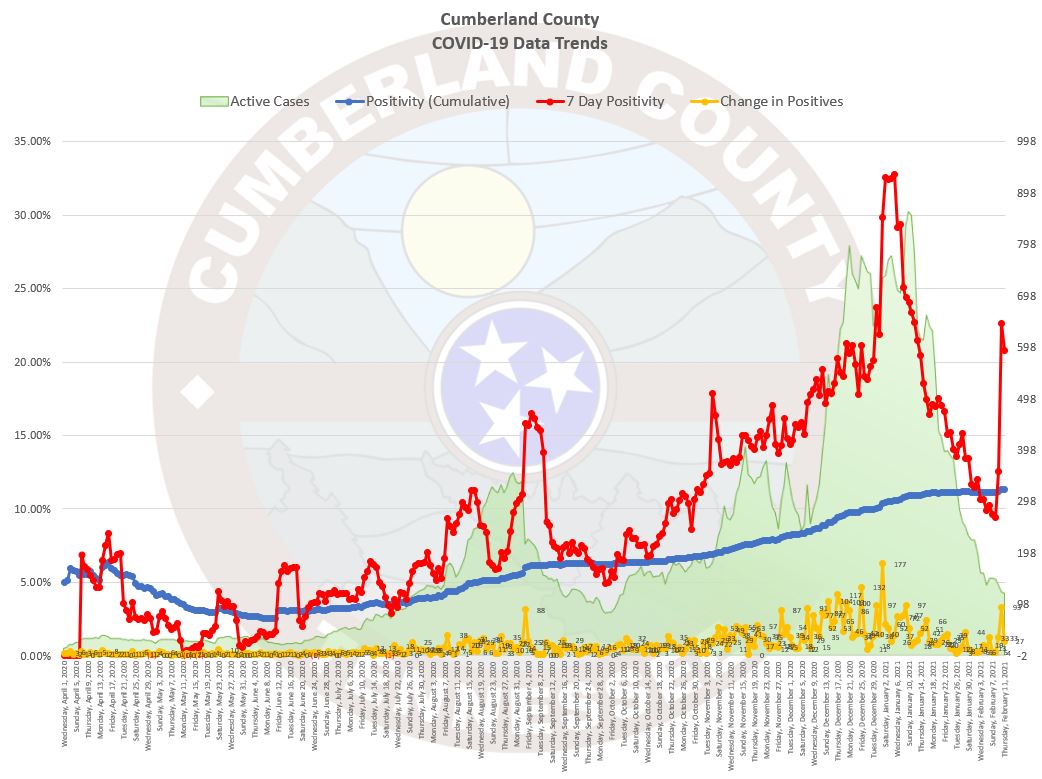 The following are the numbers from the Tennessee Department of Health (TDH) for Cumberland County as of the date of this newsletter. The change from the prior day, not my prior newsletter, is in parenthesis.