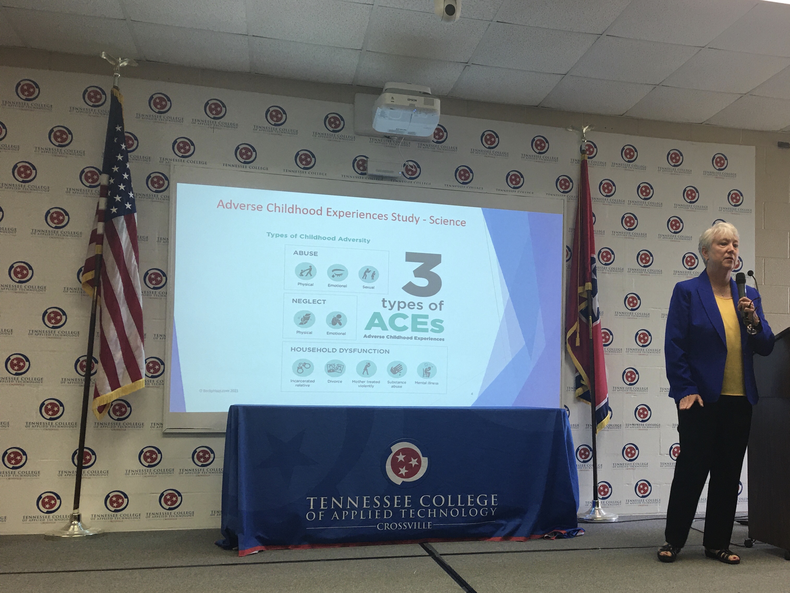 The keynote speaker for the event held today was Becky Haas, a nationally renowned ACEs expert who serves as a consultant to the East Tennessee State University/Ballad Health Strong Brain Institute and was one of the pioneers of the Northeast Tennessee ACEs Connection. Known for her contagious enthusiasm, she is a seasoned presenter on the ACEs study. She is widely recognized for her innovative work in developing a trauma-informed region throughout northeast Tennessee. Her accomplishments in Johnson City serve as one of the most dramatic examples of how a trauma-informed approach can change a community.