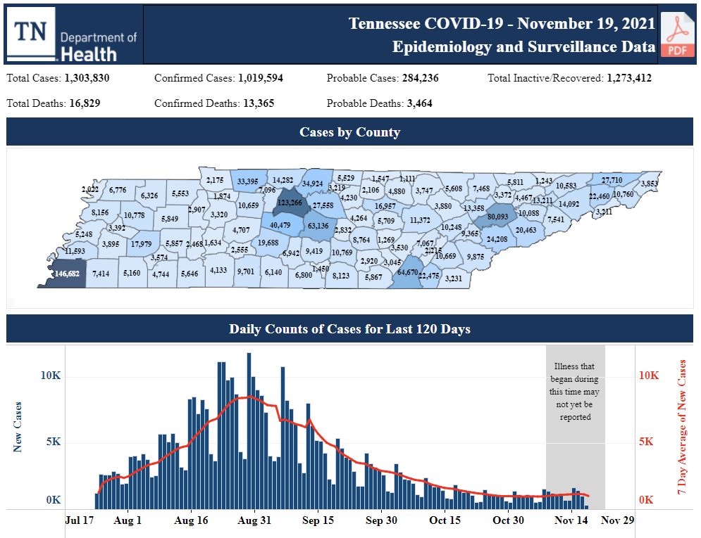 According to the Tennessee Department of Health (TDH), in Cumberland County there are 176 active cases of COVID-19, which is up.  There have been 227 deaths reported as of the date of this newsletter.  Datasets for additional information can be found at https://www.tn.gov/health/cedep/ncov/data/downloadable-datasets.html.
