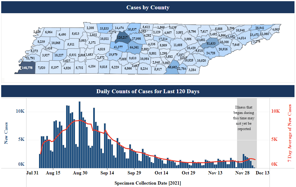 According to the Tennessee Department of Health (TDH), in Cumberland County there are 216 active cases of COVID-19, which is trending up. There have been 236 deaths reported as of the date of this newsletter. Datasets for additional information can be found at https://www.tn.gov/health/cedep/ncov/data/downloadable-datasets.html.